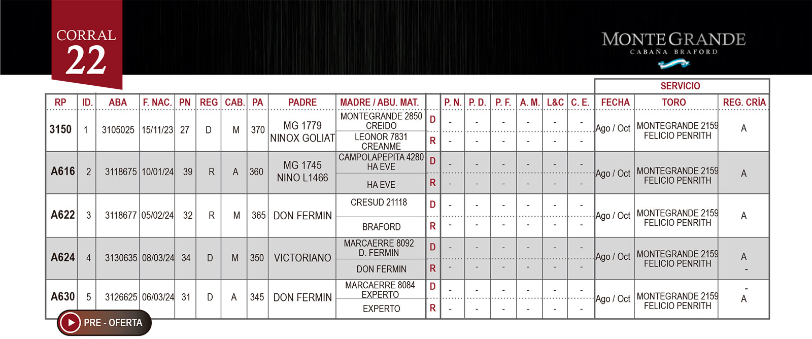 CORRAL 22 CABAÑA MONTE GRANDE – RP 3150 / RP A616 / RP A622 / RP A624 / RP A630